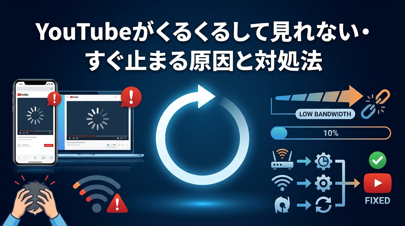 この記事では、2026年最新のYouTube仕様とネットワーク環境に基づき、動画がくるくるして見れない・すぐ止まる時の根本的な原因から、スマホ(iPhone / Android)、パソコン、さらにはテレビ(Fire TV Stickなど)といった「デバイス別の完璧な解決策」まで、約7000文字の特大ボリュームで徹底的に解説します。