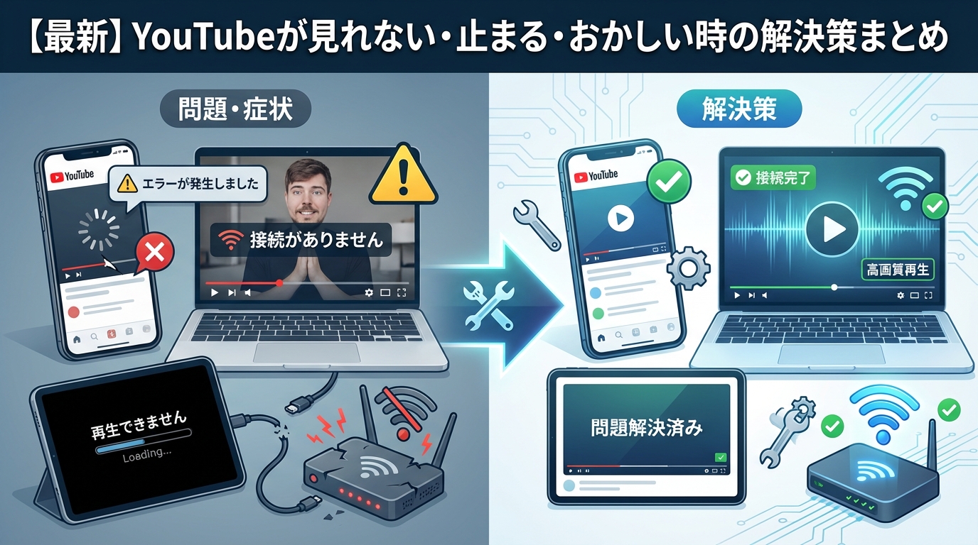 ▶︎ 【最新】YouTubeが見れない・止まる・おかしい時の解決策まとめ